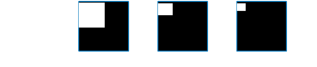 la luminosità normale aumenta del 24%, la luminosità HDR (HDR APL** 10%) aumenta del 12,5%.
